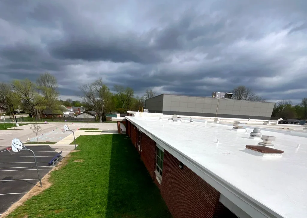 White reflective systems reduce heat absorption, helping lower cooling costs and maintain more comfortable indoor environments for classrooms and gathering spaces.